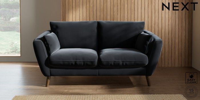 6.12.1 Buy Orlo Relaxed Sit 3 Seater Small Sofa Plush Velvet Easy Clean Charcoal Grey Retro Tapered - Mid from the Next UK online shop Click here to use our accessible website