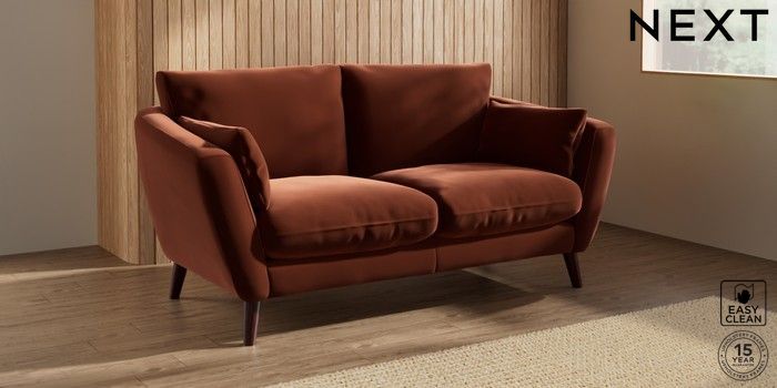 6.12.1 Buy Orlo Relaxed Sit 3 Seater Small Sofa Plush Velvet Easy Clean Ginger Orange Retro Tapered - Dark Brown from the Next UK online shop Click here to use our accessible website