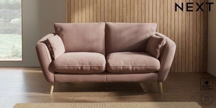 6.12.1 Buy Orlo Relaxed Sit 3 Seater Small Sofa Plush Velvet Easy Clean Mid Natural Retro Tapered - Light from the Next UK online shop Click here to use our accessible website