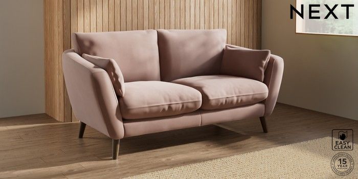 6.12.1 Buy Orlo Relaxed Sit 3 Seater Small Sofa Plush Velvet Easy Clean Mid Natural Retro Tapered - Mid from the Next UK online shop Click here to use our accessible website