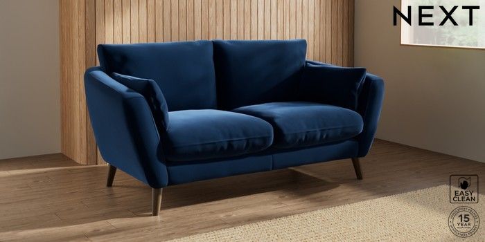 6.12.1 Buy Orlo Relaxed Sit 3 Seater Small Sofa Plush Velvet Easy Clean Navy Blue Retro Tapered - Mid from the Next UK online shop Click here to use our accessible website
