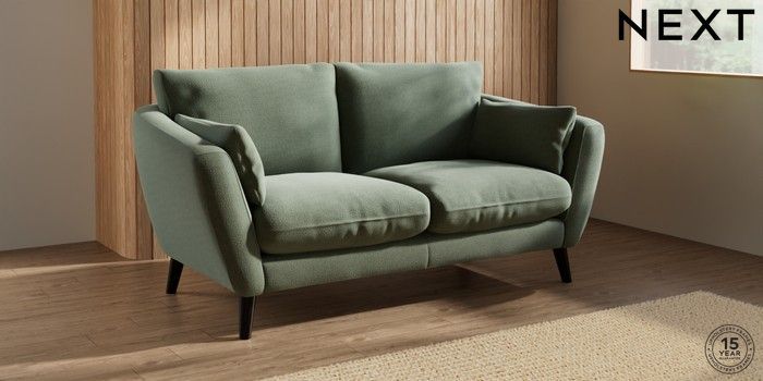 6.12.1 Buy Orlo Relaxed Sit 3 Seater Small Sofa Relaxed Linen Look Dark Green Retro Tapered - Dark from the Next UK online shop Click here to use our accessible website