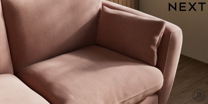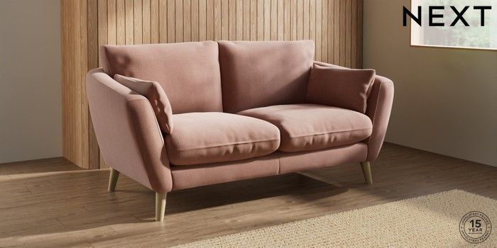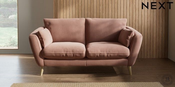6.12.1 Buy Orlo Relaxed Sit 3 Seater Small Sofa Relaxed Linen Look Light Rust Brown Retro Tapered - Light from the Next UK online shop Click here to use our accessible website