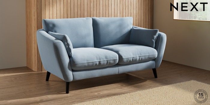 6.12.1 Buy Orlo Relaxed Sit 3 Seater Small Sofa Relaxed Linen Look Mid Blue Retro Tapered - Dark from the Next UK online shop Click here to use our accessible website