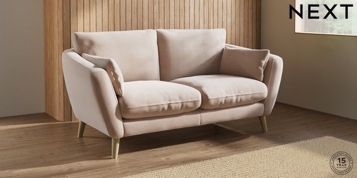 6.12.1 Buy Orlo Relaxed Sit 3 Seater Small Sofa Relaxed Linen Look Mid Natural Retro Tapered - Light from the Next UK online shop Click here to use our accessible website