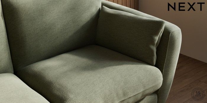 7.0.3 Buy Orlo Relaxed Sit 3 Seater Small Sofa Ripple Chenille Mid Moss Green Retro Tapered - Dark Brown from the Next UK online shop Click here to use our accessible website