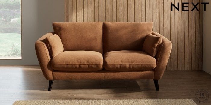 6.12.1 Buy Orlo Relaxed Sit 3 Seater Small Sofa Ripple Chenille Mid Rust Brown Retro Tapered - Dark from the Next UK online shop Click here to use our accessible website