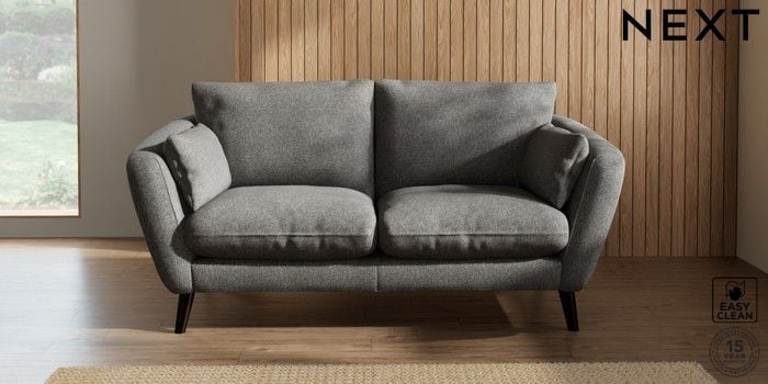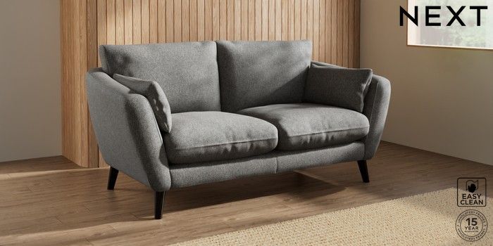 6.12.1 Buy Orlo Relaxed Sit 3 Seater Small Sofa Tweedy Blend Easy Clean Dark Grey Retro Tapered - Dark from the Next UK online shop Click here to use our accessible website