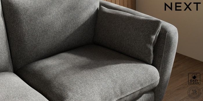 6.12.1 Buy Orlo Relaxed Sit 3 Seater Small Sofa Tweedy Blend Easy Clean Dark Grey Retro Tapered - Dark Brown from the Next UK online shop Click here to use our accessible website