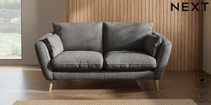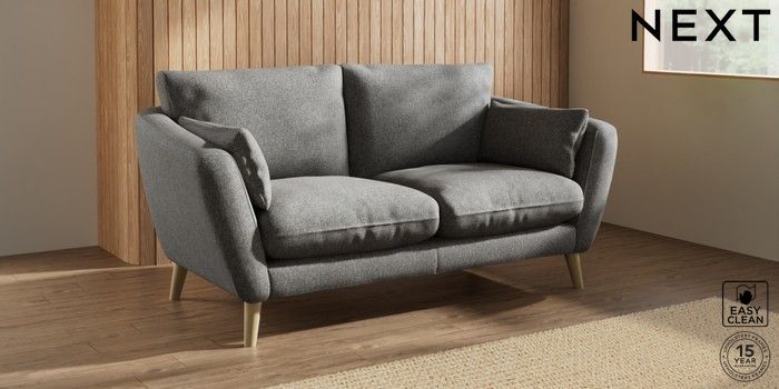6.12.1 Buy Orlo Relaxed Sit 3 Seater Small Sofa Tweedy Blend Easy Clean Dark Grey Retro Tapered - Light from the Next UK online shop Click here to use our accessible website