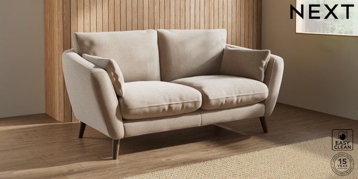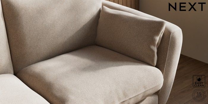 6.12.1 Buy Orlo Relaxed Sit 3 Seater Small Sofa Tweedy Blend Easy Clean Light Dove Natural Retro Tapered - Mid from the Next UK online shop Click here to use our accessible website