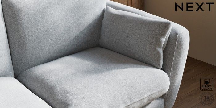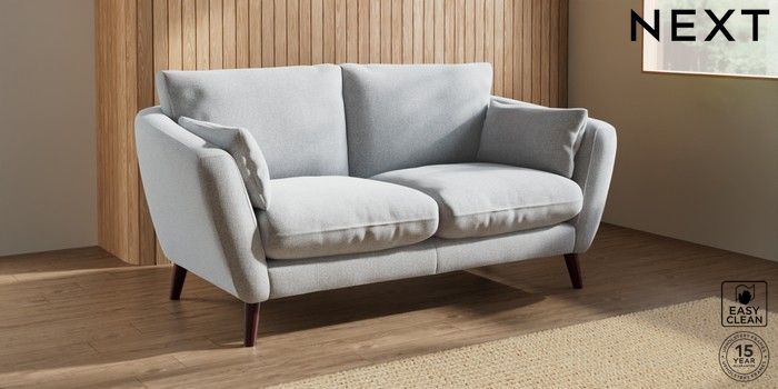 6.12.1 Buy Orlo Relaxed Sit 3 Seater Small Sofa Tweedy Blend Easy Clean Light Silver Grey Retro Tapered - Dark Brown from the Next UK online shop Click here to use our accessible website