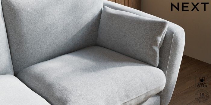 6.12.1 Buy Orlo Relaxed Sit 3 Seater Small Sofa Tweedy Blend Easy Clean Light Silver Grey Retro Tapered - Mid from the Next UK online shop Click here to use our accessible website