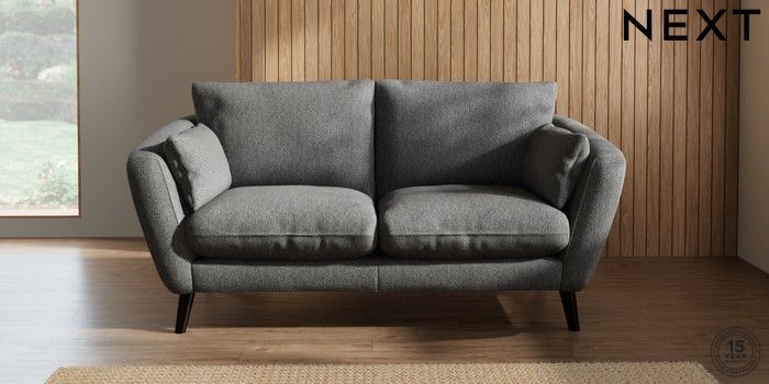6.12.1 Buy Orlo Relaxed Sit 3 Seater Small Sofa Tweedy Chenille Dark Grey Retro Tapered - Dark from the Next UK online shop Click here to use our accessible website