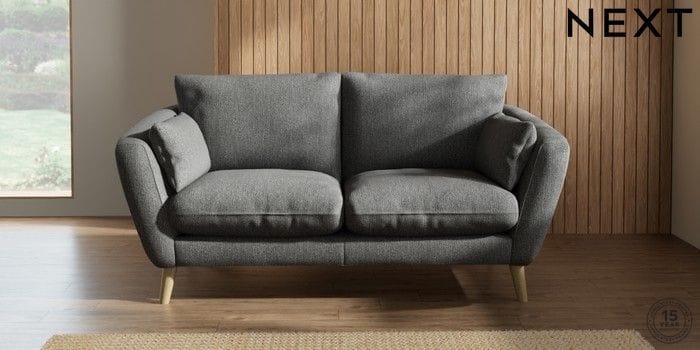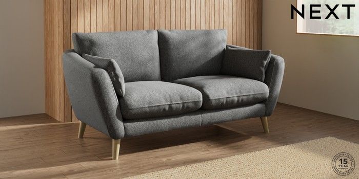 6.12.1 Buy Orlo Relaxed Sit 3 Seater Small Sofa Tweedy Chenille Dark Grey Retro Tapered - Light from the Next UK online shop Click here to use our accessible website
