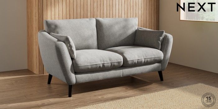6.12.1 Buy Orlo Relaxed Sit 3 Seater Small Sofa Tweedy Chenille Mid Grey Retro Tapered - Dark from the Next UK online shop Click here to use our accessible website