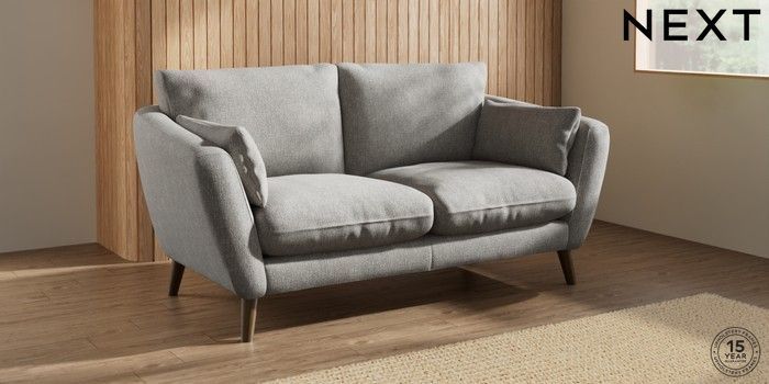 6.12.1 Buy Orlo Relaxed Sit 3 Seater Small Sofa Tweedy Chenille Mid Grey Retro Tapered - Mid from the Next UK online shop Click here to use our accessible website