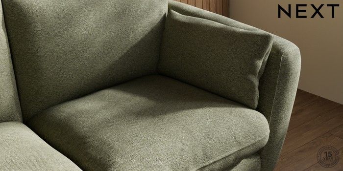 6.12.1 Buy Orlo Relaxed Sit 3 Seater Small Sofa Tweedy Chenille Mid Moss Green Retro Tapered - Dark from the Next UK online shop Click here to use our accessible website