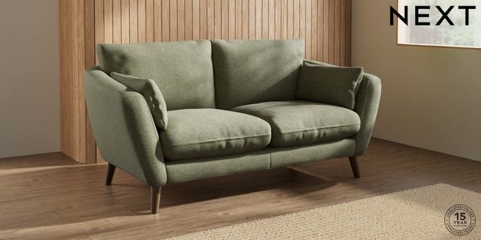 6.12.1 Buy Orlo Relaxed Sit 3 Seater Small Sofa Tweedy Chenille Mid Moss Green Retro Tapered - Mid from the Next UK online shop Click here to use our accessible website