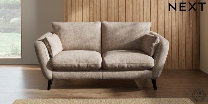 6.12.1 Buy Orlo Relaxed Sit 3 Seater Small Sofa Tweedy Chenille Mid Natural Retro Tapered - Dark from the Next UK online shop Click here to use our accessible website