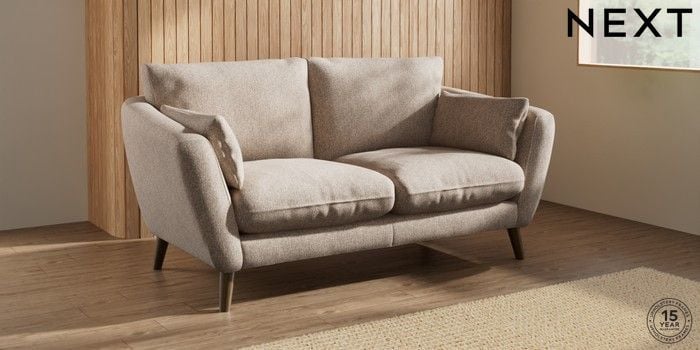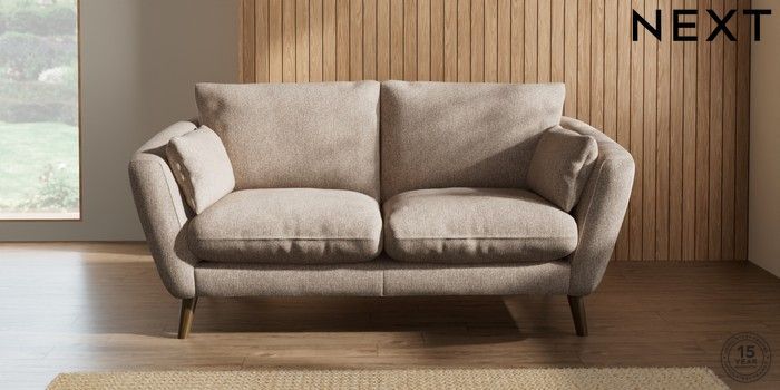 6.12.1 Buy Orlo Relaxed Sit 3 Seater Small Sofa Tweedy Chenille Mid Natural Retro Tapered - Mid from the Next UK online shop Click here to use our accessible website