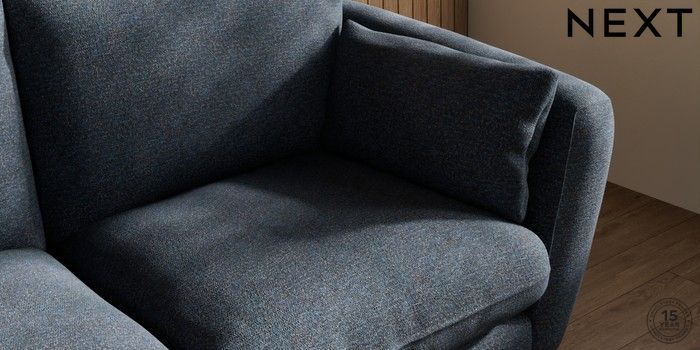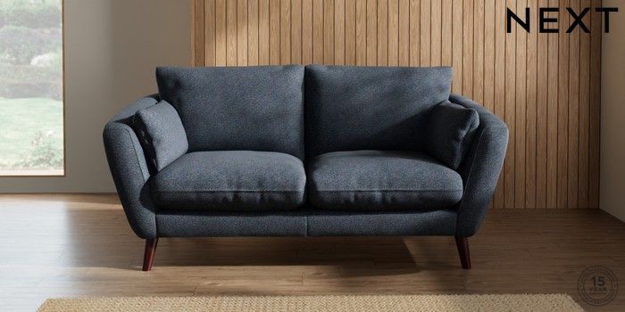 6.12.1 Buy Orlo Relaxed Sit 3 Seater Small Sofa Tweedy Chenille Navy Blue Retro Tapered - Dark Brown from the Next UK online shop Click here to use our accessible website