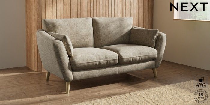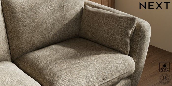 6.12.1 Buy Orlo Relaxed Sit 3 Seater Small Sofa Woven Chenille Easy Clean Mid Natural Retro Tapered - Light from the Next UK online shop Click here to use our accessible website