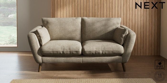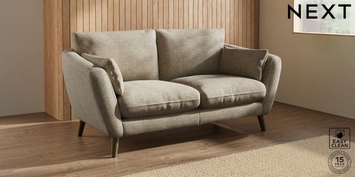 6.12.1 Buy Orlo Relaxed Sit 3 Seater Small Sofa Woven Chenille Easy Clean Mid Natural Retro Tapered - Mid from the Next UK online shop Click here to use our accessible website