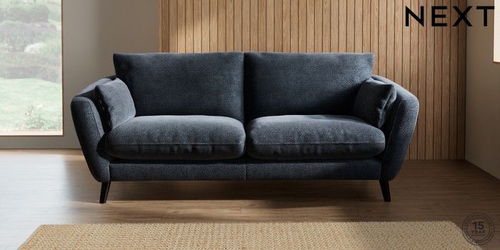 6.12.1 Buy Orlo Relaxed Sit 3 Seater Sofa Boucle Chenille Dark Slate Blue Retro Tapered - Dark from the Next UK online shop Click here to use our accessible website