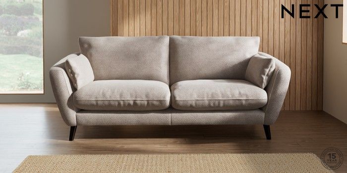 6.12.1 Buy Orlo Relaxed Sit 3 Seater Sofa Boucle Chenille Light Natural Retro Tapered - Dark from the Next UK online shop Click here to use our accessible website