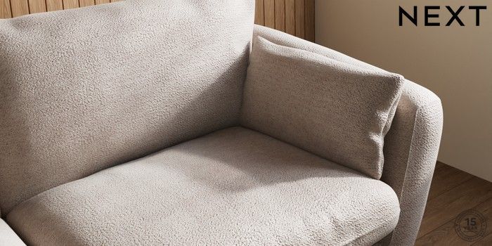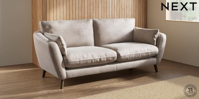 6.12.1 Buy Orlo Relaxed Sit 3 Seater Sofa Boucle Chenille Light Natural Retro Tapered - Mid from the Next UK online shop Click here to use our accessible website