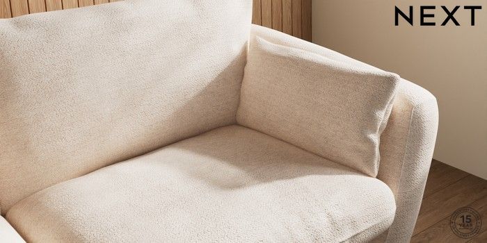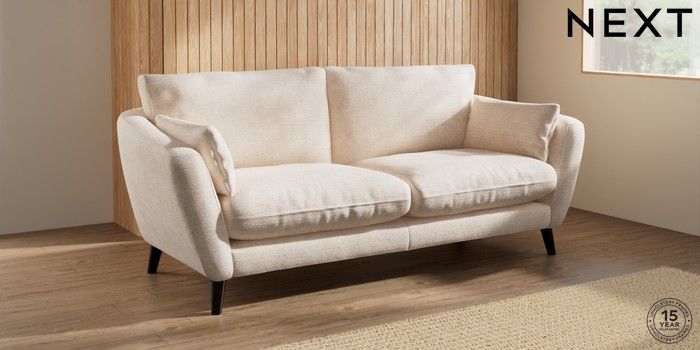 6.12.1 Buy Orlo Relaxed Sit 3 Seater Sofa Boucle Chenille Oyster Retro Tapered - Dark from the Next UK online shop Click here to use our accessible website