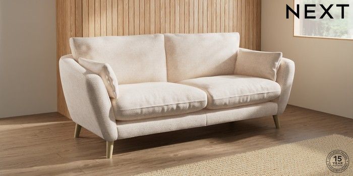 6.12.1 Buy Orlo Relaxed Sit 3 Seater Sofa Boucle Chenille Oyster Retro Tapered - Light from the Next UK online shop Click here to use our accessible website