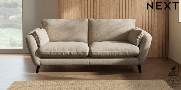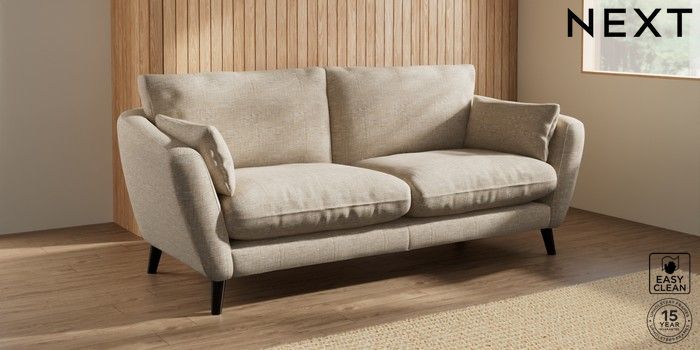 6.12.1 Buy Orlo Relaxed Sit 3 Seater Sofa Boucle Weave Easy Clean Dark Natural Retro Tapered - Dark from the Next UK online shop Click here to use our accessible website