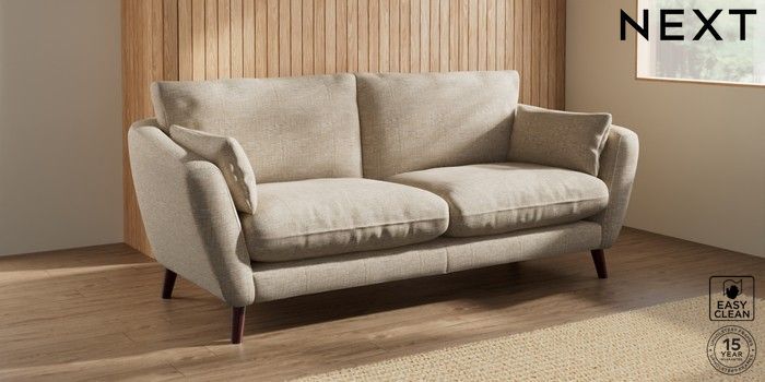6.12.1 Buy Orlo Relaxed Sit 3 Seater Sofa Boucle Weave Easy Clean Dark Natural Retro Tapered - Dark Brown from the Next UK online shop Click here to use our accessible website