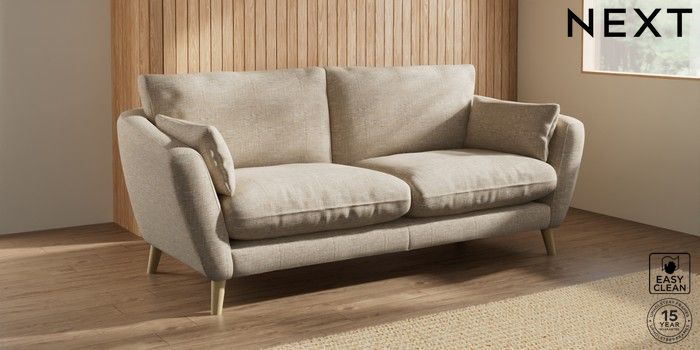 6.12.1 Buy Orlo Relaxed Sit 3 Seater Sofa Boucle Weave Easy Clean Dark Natural Retro Tapered - Light from the Next UK online shop Click here to use our accessible website