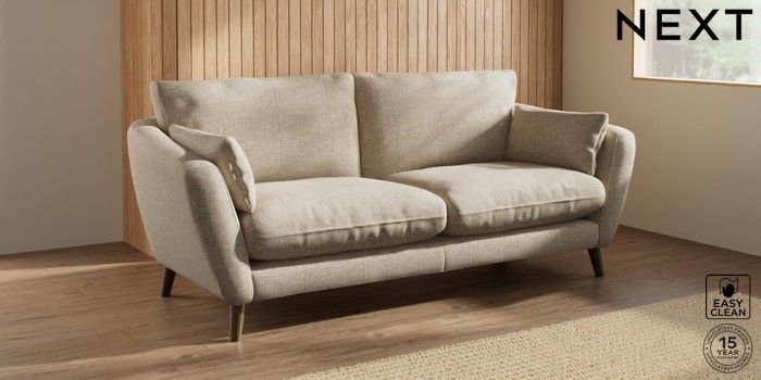 6.12.1 Buy Orlo Relaxed Sit 3 Seater Sofa Boucle Weave Easy Clean Dark Natural Retro Tapered - Mid from the Next UK online shop Click here to use our accessible website