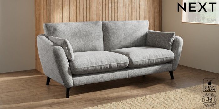 6.12.1 Buy Orlo Relaxed Sit 3 Seater Sofa Chunky Boucle Easy Clean Light Grey Retro Tapered - Dark from the Next UK online shop Click here to use our accessible website