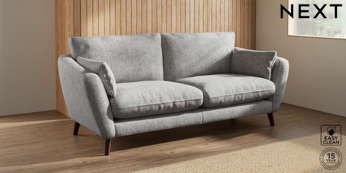 6.12.1 Buy Orlo Relaxed Sit 3 Seater Sofa Chunky Boucle Easy Clean Light Grey Retro Tapered - Dark Brown from the Next UK online shop Click here to use our accessible website