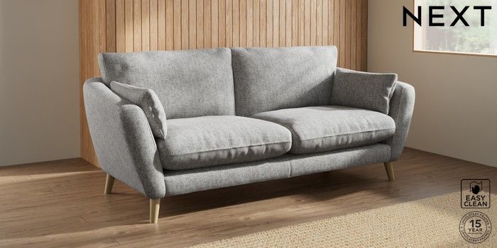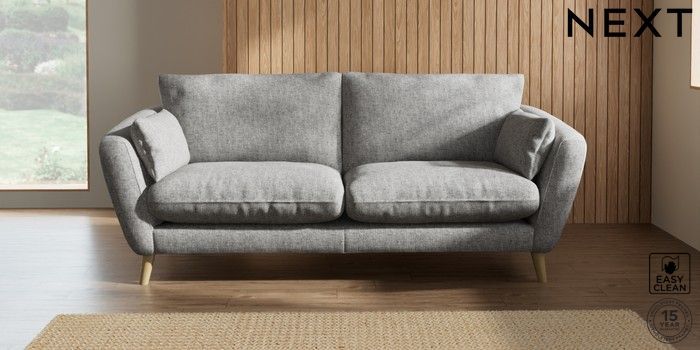 6.12.1 Buy Orlo Relaxed Sit 3 Seater Sofa Chunky Boucle Easy Clean Light Grey Retro Tapered - Light from the Next UK online shop Click here to use our accessible website