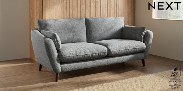 6.12.1 Buy Orlo Relaxed Sit 3 Seater Sofa Chunky Boucle Easy Clean Mid Grey Retro Tapered - Dark Brown from the Next UK online shop Click here to use our accessible website