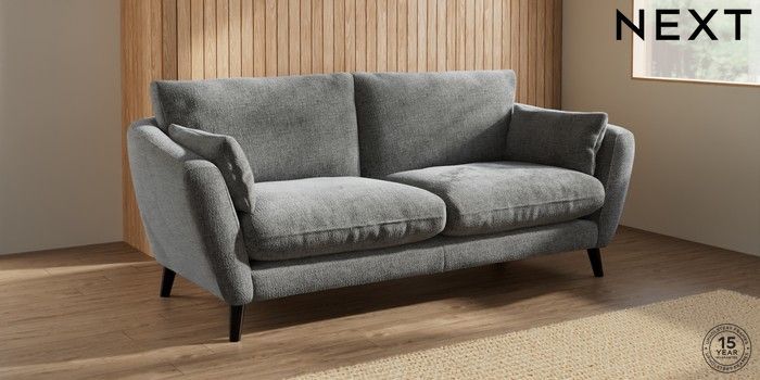 6.12.1 Buy Orlo Relaxed Sit 3 Seater Sofa Chunky Chenille Dark Grey Retro Tapered - Dark from the Next UK online shop Click here to use our accessible website