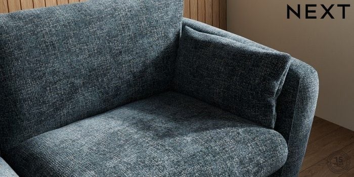 6.12.1 Buy Orlo Relaxed Sit 3 Seater Sofa Chunky Chenille Dark Navy Blue Retro Tapered - Dark Brown from the Next UK online shop Click here to use our accessible website