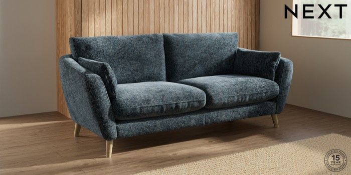 6.12.1 Buy Orlo Relaxed Sit 3 Seater Sofa Chunky Chenille Dark Navy Blue Retro Tapered - Light from the Next UK online shop Click here to use our accessible website