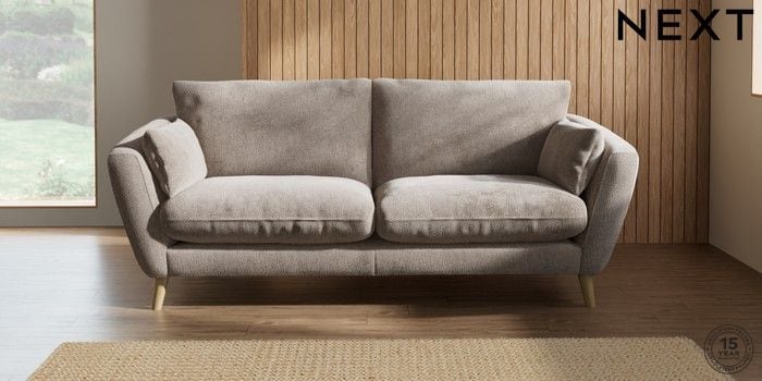 6.12.1 Buy Orlo Relaxed Sit 3 Seater Sofa Chunky Chenille Light Dove Retro Tapered - Light from the Next UK online shop Click here to use our accessible website