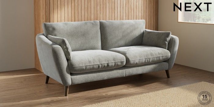 6.12.1 Buy Orlo Relaxed Sit 3 Seater Sofa Chunky Chenille Light Grey Retro Tapered - Mid from the Next UK online shop Click here to use our accessible website