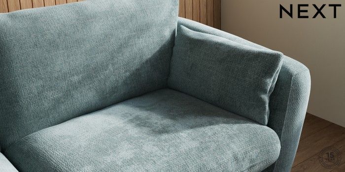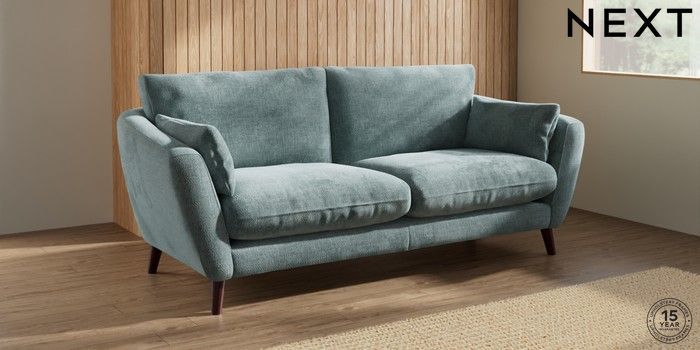 6.12.1 Buy Orlo Relaxed Sit 3 Seater Sofa Chunky Chenille Light Teal Green Retro Tapered - Dark Brown from the Next UK online shop Click here to use our accessible website