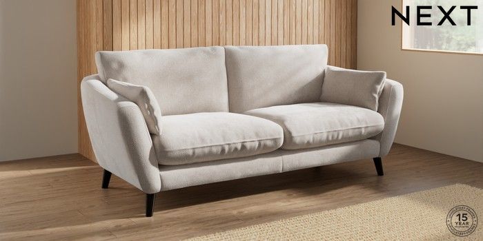 6.12.1 Buy Orlo Relaxed Sit 3 Seater Sofa Chunky Chenille Oyster Retro Tapered - Dark from the Next UK online shop Click here to use our accessible website