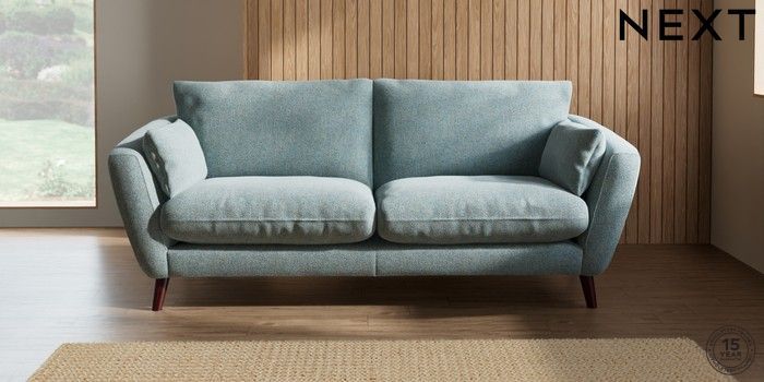 6.12.1 Buy Orlo Relaxed Sit 3 Seater Sofa Chunky Marl Mid Blue Retro Tapered - Dark Brown from the Next UK online shop Click here to use our accessible website