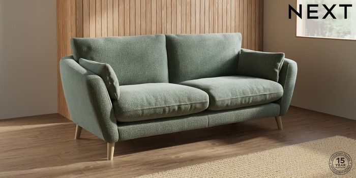 6.12.1 Buy Orlo Relaxed Sit 3 Seater Sofa Chunky Texture Mid Forest Green Retro Tapered - Light from the Next UK online shop Click here to use our accessible website